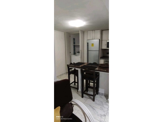 Incluye: box matrimonial (sin colch贸n), nevera, estufa, horno, lavadora-secadora, microondas, juego de sala, 2 estantes, mesa con dos sillas, aire acondicionado y tv.